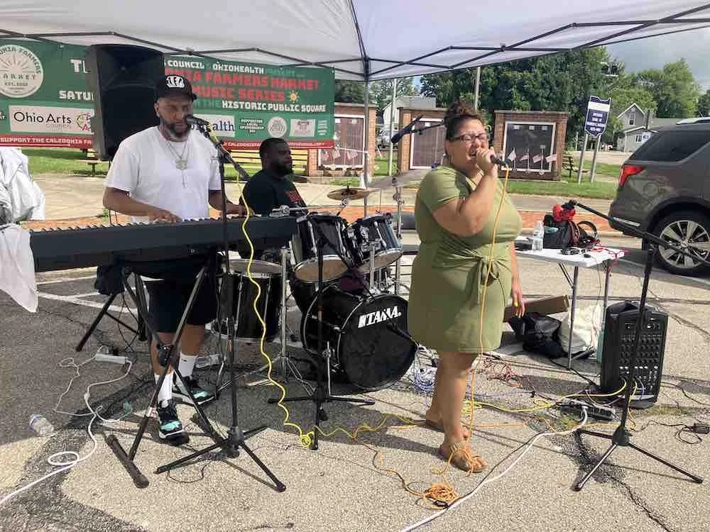 Caledonia Northern Folk Studios contracted with the Caledonia Farmers Market in Caledonia, Ohio to program-develop, grantwrite, & administer an innovative summer-long plein air music series: hosted on Saturday mornings between July-September during the Caledonia Farmers Market, on Caledonia’s historic Public Square. For three years, this beloved summer music series featured & paid presenting & performing artists & bands — including emerging & young musicians — in a wide range of genres: including ambient/experimental electronica, R&B, blues, jazz saxophone, old-time, bluegrass, jam tunes, & oldies. The series was funded each year through an ArtSTART grant from the Ohio Arts Council, with matching support from local businesses & flagship support from OhioHealth.